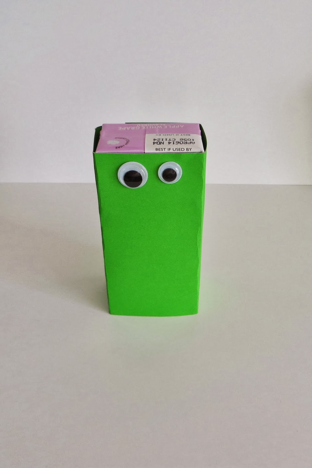 one end of the rectangle to the juice box and wrap card stock around the outside of box.